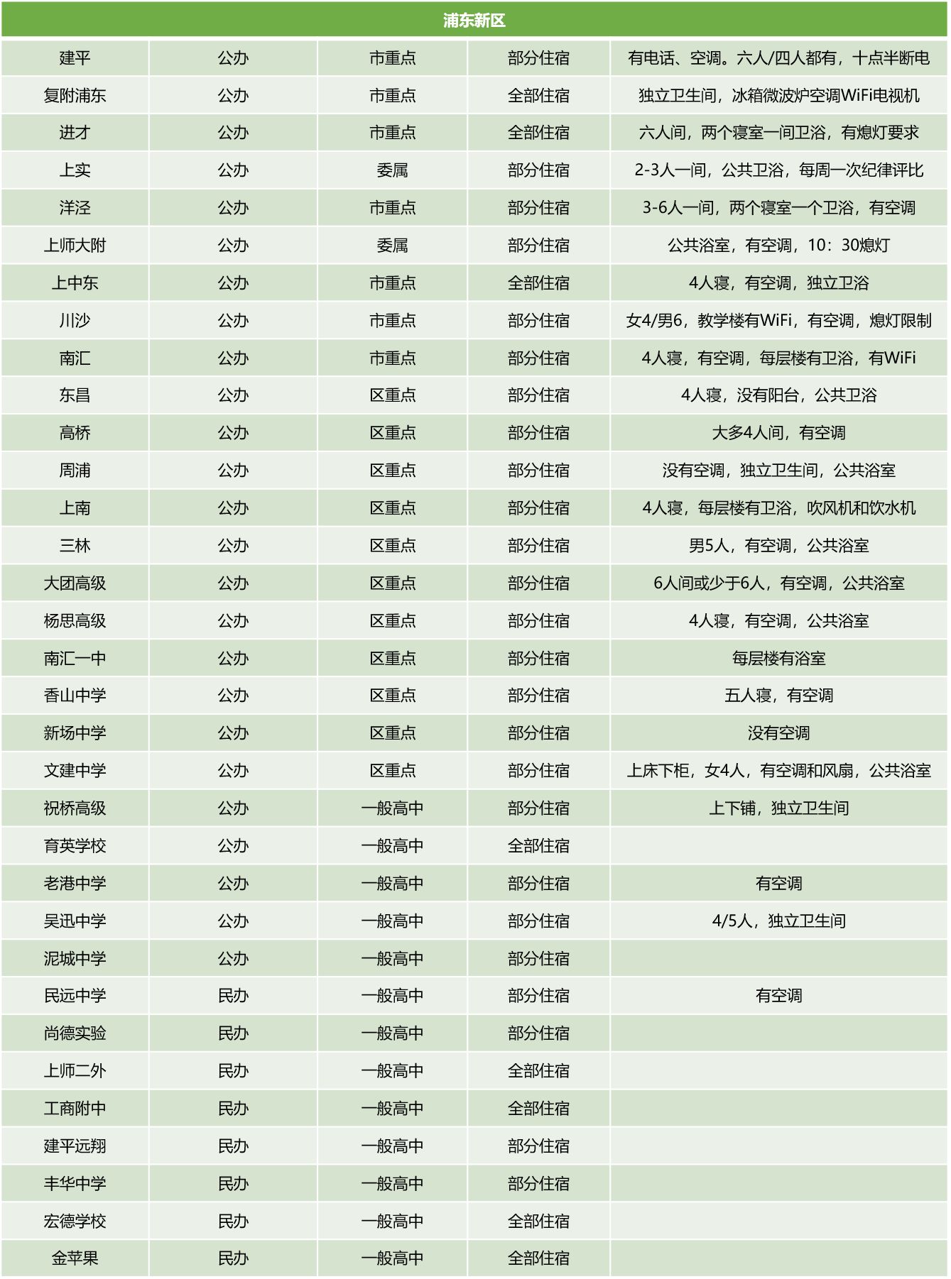 上海各大高中住宿条件大盘点