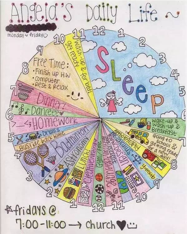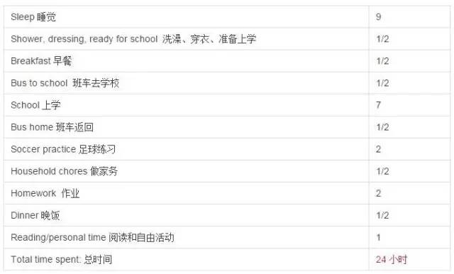 只有对时间的分配心中有数,才能知道自己到底能做什么,不能做什么。这是一个小学四年级学生做的 Time Budget。