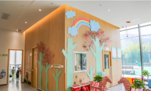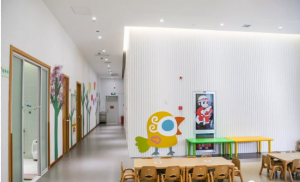 走进托育园,仿佛进入了一个小小童话世界,整体风格温馨柔和、充满童趣。园内主要有室外运动场、室内活动区、教室等功能分区,并配有独立的幼儿卫生间和配餐厨房。