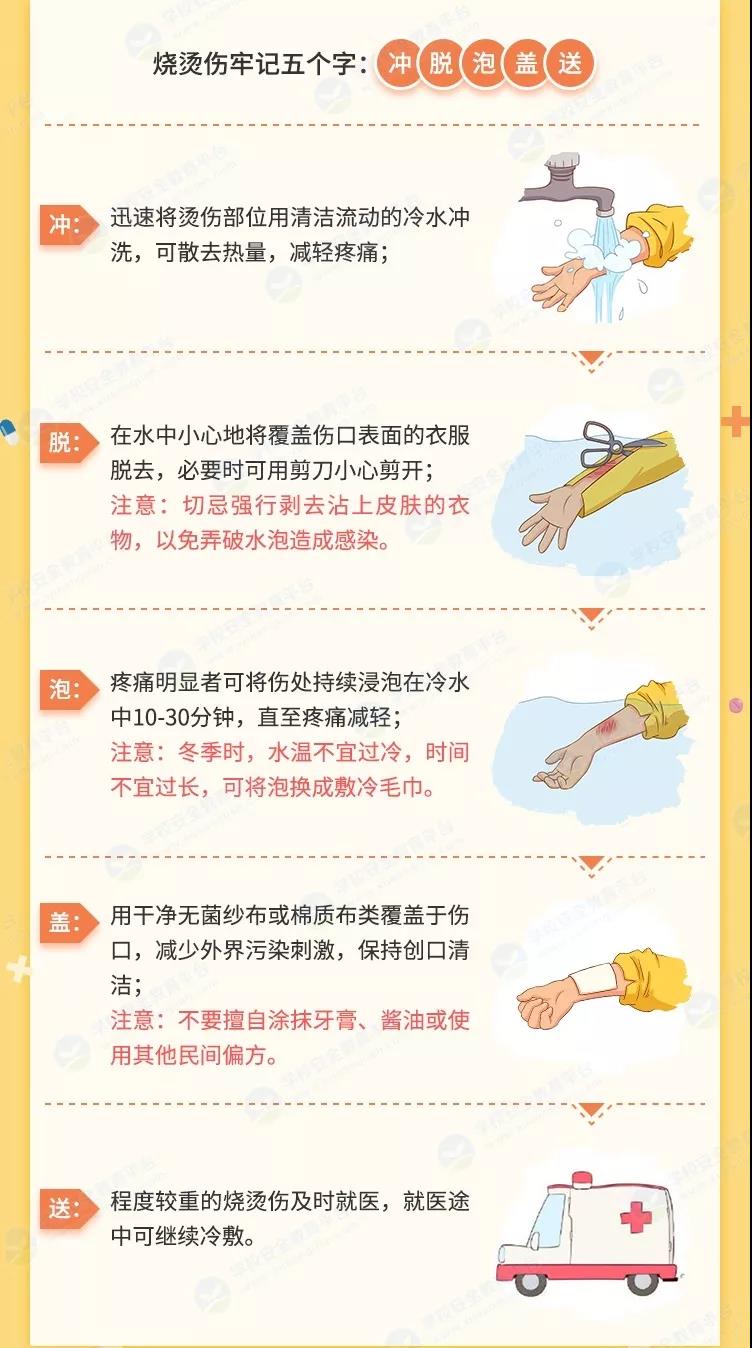 要知道对于意外事件,医生不可能及时赶到,孩子能依靠的只有在现场的你。而如果烫伤后紧急处理不正确,很可能会加重孩子的伤情。所以,下面正确的烧烫伤紧急处理五步法,赶紧get起来吧!